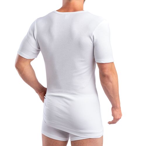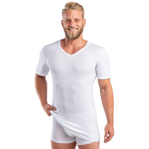 HERMKO 488710 Extralanges Herren kurzarm Shirt +6 cm V mit Bund - kein Rutschen aus 100% Bio-Baumwolle