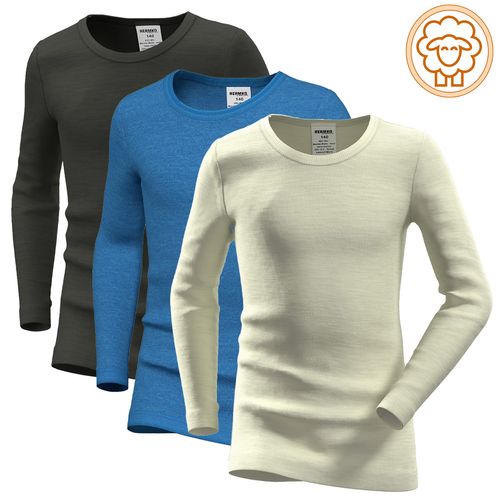 HERMKO 40283 Kinder langarm Shirt Rundhals aus Merinwolle und Tencel longsleeve